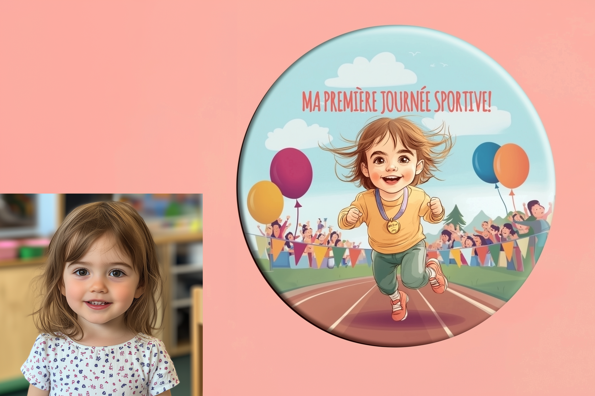 - Type de support au choix:imant (magnet) ou porte-clé, au format badge. ❌ Pas de badge à épingle, par souci de sécurité pour les jeunes enfants